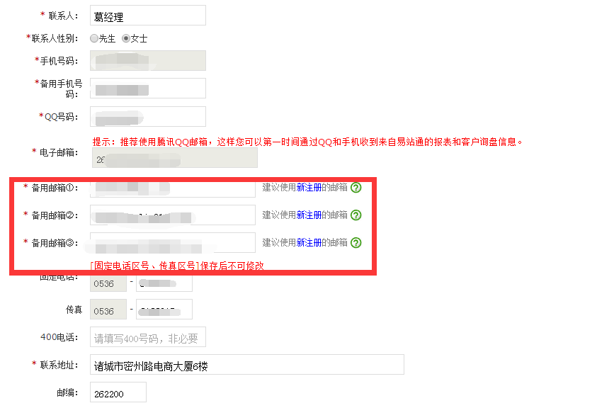 易站通在聯(lián)系方式的地方,新增了一個備用郵箱的選項,如下圖。這里請務(wù)必填寫,注意以下事項: